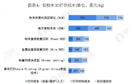 原材料是金屬3D 打印的制造成本中占比最大的一部分。DigitalAlloys以鈦粉末(6Al-4V)為例,對于SLM、EBM、DED、Binder Jetting、Digital Alloys等主流的金屬3D打印工藝的制備成本進(jìn)行統(tǒng)計,發(fā)現(xiàn)每千克產(chǎn)品的打印成本中原材料成本是占比最高的(除SLM工藝外),同時隨著成型精度、成型質(zhì)量、打印時間的增長,設(shè)備、維護(hù)和人工的占比逐步提升,在打印質(zhì)量最好的SLM工藝中,設(shè)備、維護(hù)和人工成本是占比最高的,其中也有專利保護(hù)因素,但是在打印效率越來越高、規(guī)模效應(yīng)越來越明顯的趨勢下,材料成本占比將進(jìn)一步提升。
